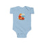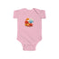 Baby clothing needs to be both durable and soft. With the infant fine jersey bodysuit, youths get just that. The fabric is 100% cotton for solid colors. For heather colors, polyester is included. There are seams along the sides of this product. All bindings are made with ribbed knitting for improved durability. There are plastic snaps at the cross closure for easy changing access.